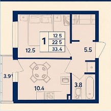 1комн. 37 м² - 3.800.000 ₽